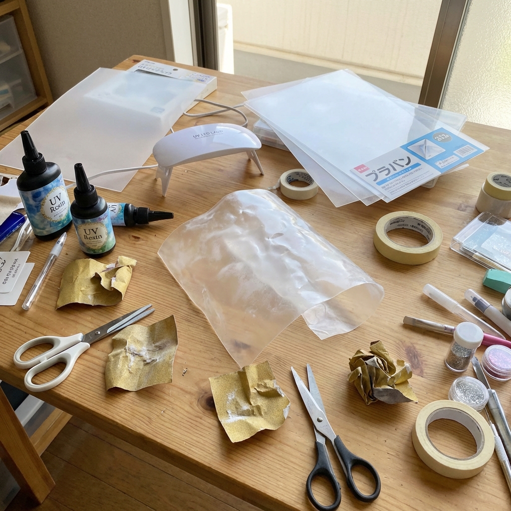 • 材料費:プラ板、レジン液、その他消耗品で数百円。