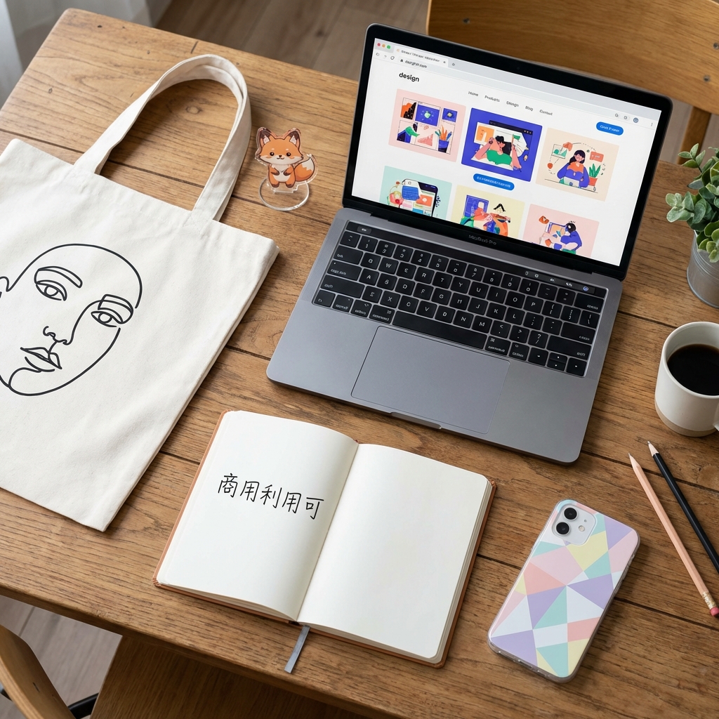 チラシやWebサイトへの使用(一般的な商用利用)はOKでも、Tシャツやスマホケースとして素材そのものを販売する行為は禁止されているサイトが多いです。これを「商品化利用」と呼びます。